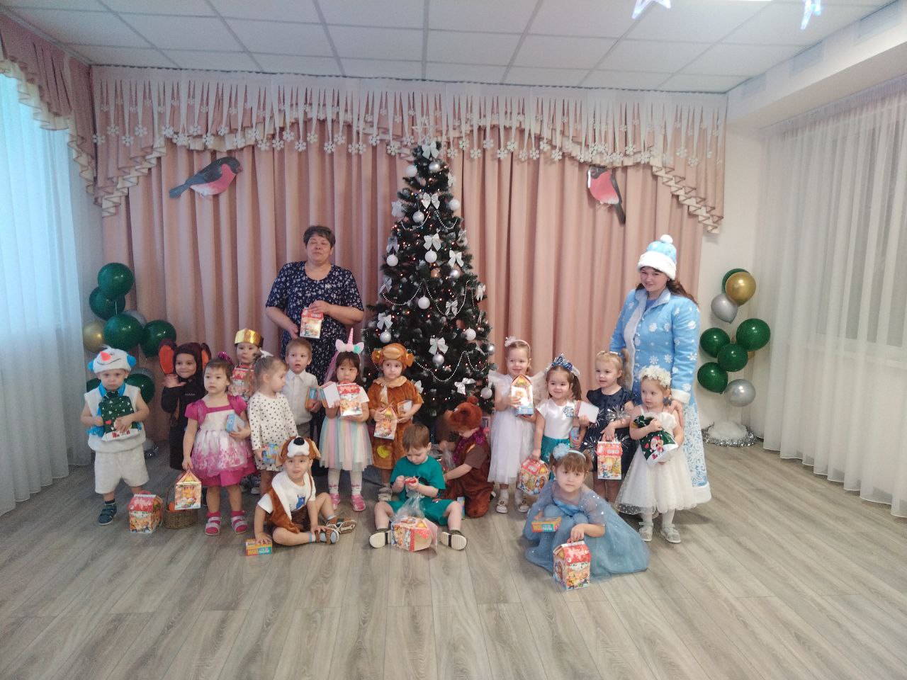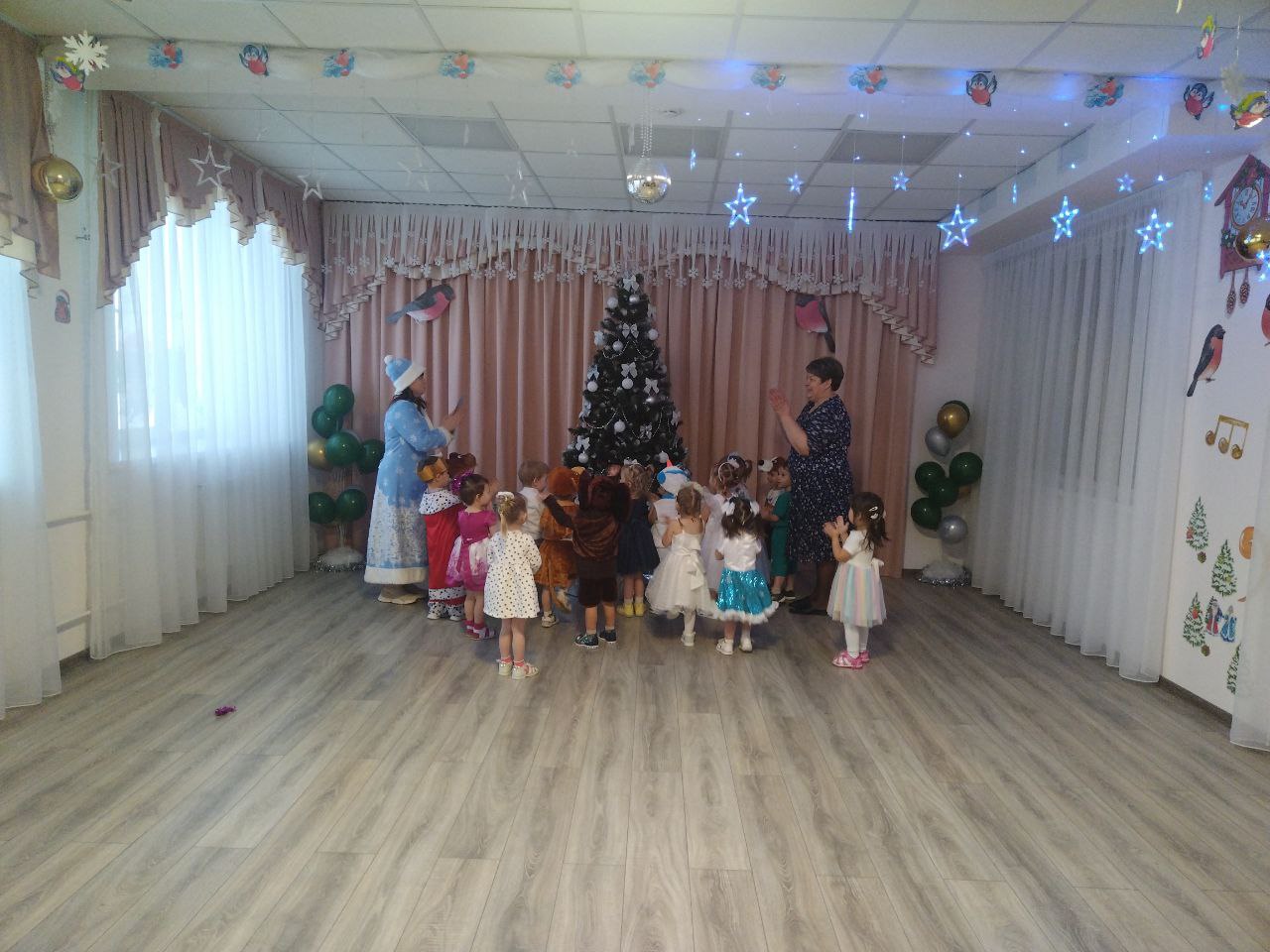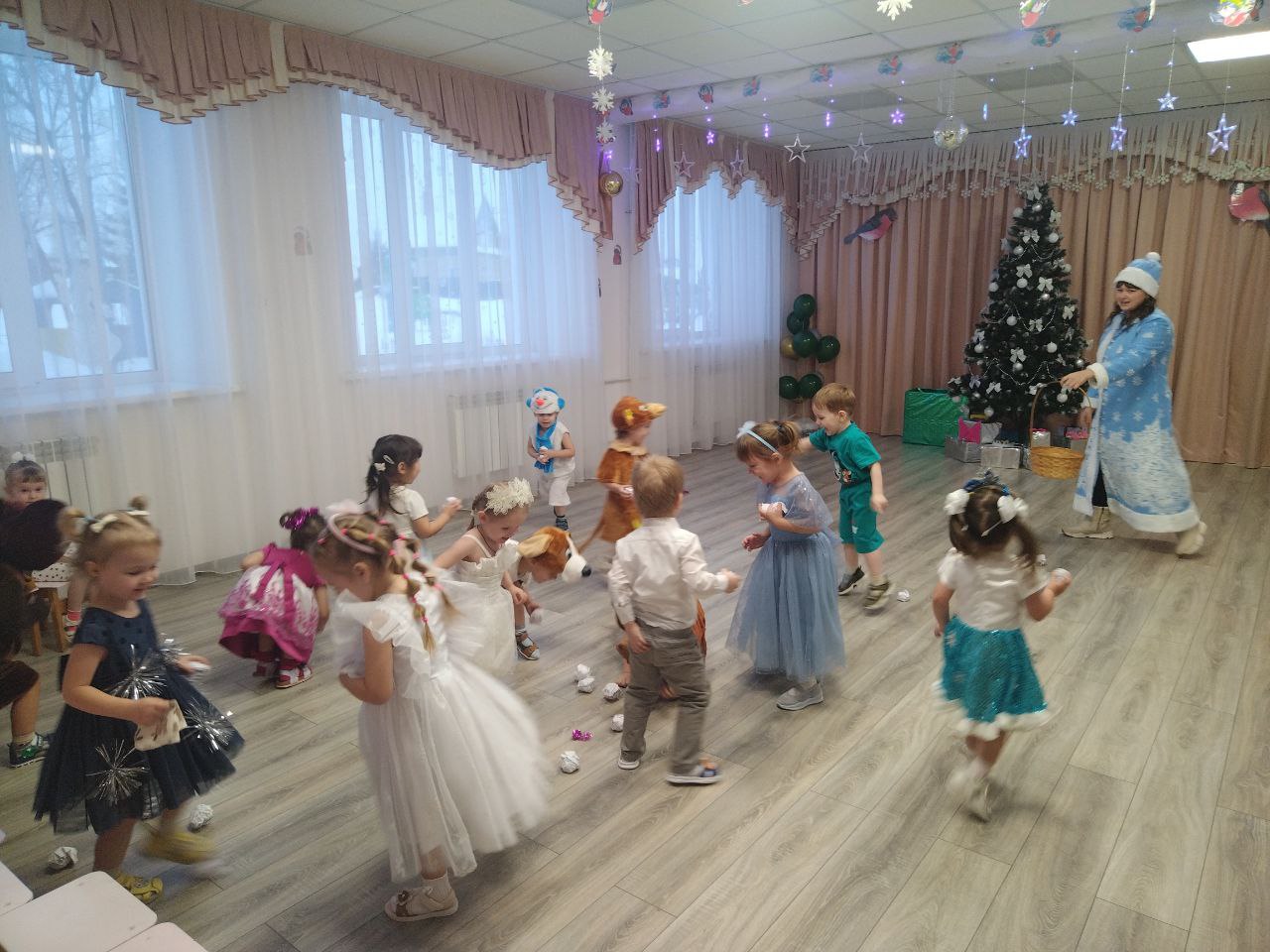 Все эти чудеса происходили в нашем любимом детском саду . И первыми окунулись в волшебство праздника ребята первой младшей группы «Звездочки В зале украшенная красавица-елка, снежинки, порхающие над головой. Дети пришли на праздник веселые и нарядные в предвкушении чудес. И началось волшебство. Под звон волшебного колокольчика появилась Снегурочка. Поздравила ребят с праздником, предложила исполнить для елочки песню. После песни дети с большим удовольствием играли в снежки, особенно им понравилась игра с елочкой, в которой они помогали зажечь огни. В заключении праздника ребят ждал сюрприз от Снегурочки, конечно, же это подарки, которые дети ждали с нетерпением. Никто не остался без внимания.